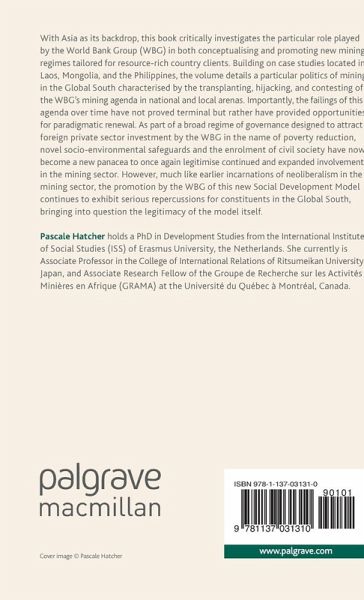 With Asia as its backdrop, this book investigates the role played by the World Bank Group (WBG) in conceptualising and promoting new mining regimes tailored for resource-rich country clients. It details a particular politics of mining in the Global South characterised by the transplanting, hijacking and contesting of the WBG's mining agenda.