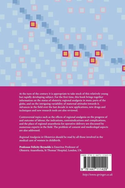 At the turn of the century it is appropriate to take stock of this relatively young but rapidly developing subject. For the first time, this book brings together information on the status of obstetric regional analgesia in many parts of the globe, and on the intriguing variability of maternal attitudes towards it. Advances in the field over the last decade in new applications, new drugs and techniques and new research tools are also reviewed. Controversial topics such as the effects of regional analgesia on the progress of and outcome of labour, the indications, contraindications and complications, and the place of regional anaesthesia for operative delivery are discussed by numerous experts in the field. The problem of consent and medicolegal aspects are also addressed. Regional Analgesia in Obstetrics should be read by all those involved in the medical care of women in childbirth. Professor Felicity Reynolds is Emeritus Professor of Obstetric Anaesthesia, St Thomas' Hospital, London, UK.
