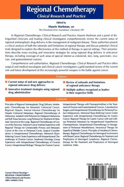 "This book features a relatively thorough discussion of regional chemotherapy in most body cavities, and for most diseases for which there is a current use. Extensive coverage of intraperitoneal chemotherapy for ovarian and gastrointestinal cancers, mesothelioma, is a strength of the text. Likewise, isolated limb and organ perfusion are extensively covered. . . This is a good book with a good purpose. . .it is comprehensive and can be a useful guide in caring for the individual patient or implementing a new approach to treatment in general. Some otherwise hard to find information is presented in this book, which may help in the general dissemination of and use of these therapies. "-Doody's Health Sciences Book Review Journal "The promising and highly innovative approaches to the management of malignant diseases that employ regional drug delivery have been reported during past several years. This book provides an excellent state-of-the-art of this topic....many distinguished contributors-the leading clinicians and clinical investigators discuss in depth all clinical aspects of intrahepatic chemotherapy, isolated limb perfusion, intravesical, intraventricular and intrathccal application of antincoplastic drugs as well as the intracavitary chemotherapy." - Neoplasma "Specific malignant disease settings are exhaustively discussed, and while the local/regional therapeutic approach is advocated throughout, other, more traditional, strategies are also discussed, as is regional drug delivery as part of a multidisciplinary management effort in the most complex tumor forms....The book also includes an important topical chapter on intraperitoneal biological therapies for ovarian cancer, and researchers in this area will appreciate the wealth of recent biological references...The methods and the chemotherapies described, illustrated by a number of useful figures, will provide a good source of reference for oncologists, surgeons, gynaecologists, haematologists and other oncological specialists seeking to enrich their understanding and hone their skills in this rapidly expanding sector."...Retinoids "Rather than encouraging open acceptance of sophisticated, challenging techniques, the authors of each chapter cautiously present pros, cons, and the pitfalls of promising areas in cancer therapy. Few if any individual text books in the field of surgical oncology have focused solely on this developing field of cancer treatment. A surgeon or oncologist interested in an initial review of the subject will be rewarded with a clinical treatise that advances new cancer treating strategies." - Arch Surg