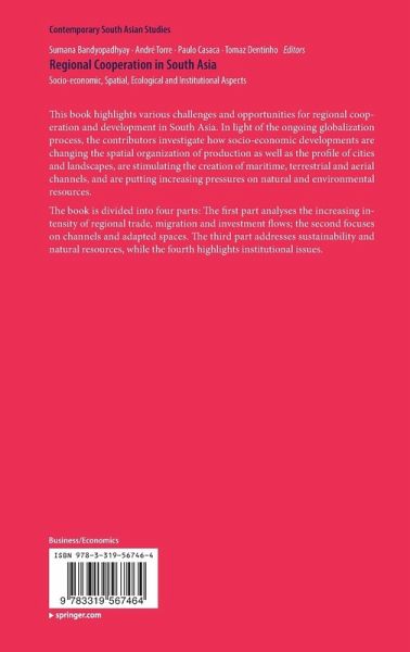 This book highlights various challenges and opportunities for regional cooperation and development in South Asia. In light of the ongoing globalization process, the contributors investigate how socio-economic developments are changing the spatial organization of production as well as the profile of cities and landscapes, are stimulating the creation of maritime, terrestrial and aerial channels, and are putting increasing pressures on natural and environmental resources. The book is divided into four parts: The first part analyses the increasing intensity of regional trade, migration and investment flows; the second focuses on channels and adapted spaces. The third part addresses sustainability and natural resources, while the fourth highlights institutional issues.