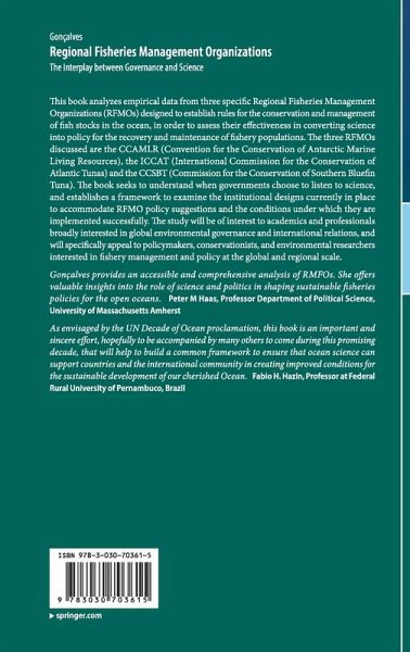 This book analyzes empirical data from three specific Regional Fisheries Management Organizations (RFMOs) designed to establish rules for the conservation and management of fish stocks in the ocean, in order to assess their effectiveness in converting science into policy for the recovery and maintenance of fishery populations. The three RFMOs discussed are the CCAMLR (Convention for the Conservation of Antarctic Marine Living Resources), the ICCAT (International Commission for the Conservation of Atlantic Tunas) and the CCSBT (Commission for the Conservation of Southern Bluefin Tuna). The book seeks to understand when governments choose to listen to science, and establishes a framework to examine the institutional designs currently in place to accommodate RFMO policy suggestions and the conditions under which they are implemented successfully. The study will be of interest to academics and professionals broadly interested in global environmental governance and international relations, and will specifically appeal to policymakers, conservationists, and environmental researchers interested in fishery management and policy at the global and regional scale.