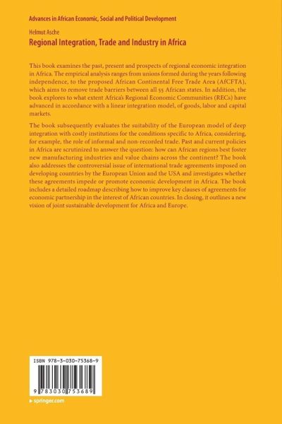 The book subsequently evaluates the suitability of the European model of deep integration with costly institutions for the conditions specific to Africa, considering, for example, the role of informal and non-recorded trade. Stylized cases of regional division of labour with increasing returns and imperfect competition are introduced to support the economic integration logic. Past and current economic policies in Africa are scrutinized to answer the question: how can African regions best foster new manufacturing industries and value chains across the continent? In conclusion, the book outlines content and processes of Common Industrial Policy in the African regions. The book also addresses the controversial issue of international trade agreements between developing countries and the European Union or the USA and investigates whether these agreements impede or promote economic development in Africa. The book includes a detailed roadmap describing how to improve key clauses of agreements for economic partnership in the interest of African countries. In closing, it outlines a new vision of joint sustainable development for Africa and Europe.