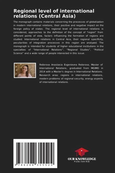 The monograph contains materials concerning the processes of globalization in modern international relations, their positive and negative impact on the foreign policy of states. The regional level of international relations is considered, approaches to the definition of the concept of "region" from different points of view, factors influencing the formation of regions are studied. International relations in Central Asia, their regional specificity, peculiarities of integration processes in this region are analyzed. The monograph is intended for students of higher educational institutions in the specialties of "International Relations", "Regional Studies", "Political Science" and a wide range of people interested in this issue.