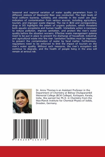 Seasonal and regional variation of water quality parameters from 13 different stations of Meenachil River was conducted. The high levels of fecal coliform bacteria, turbidity, and chloride in the water are clear indicators of contamination from various sources, including agriculture, tourism, and improper waste disposal. The rise in BOD and corresponding drop in DO highlights the extent of organic pollution, which threatens both aquatic ecosystems and human health. Immediate action is necessary to reduce pollution, improve sanitation, and protect the river's water quality before the situation worsens. Effective waste management systems need to be put in place to prevent the discharge of household, industrial, and agricultural waste into the river. Sanitation facilities must be improved to prevent the contamination of water by fecal matter. Furthermore, regulations need to be enforced to limit the impact of tourism on the river's water quality. Without such measures, the river's ecosystem will continue to degrade, and the health of people living in the area will remain at serious risk.