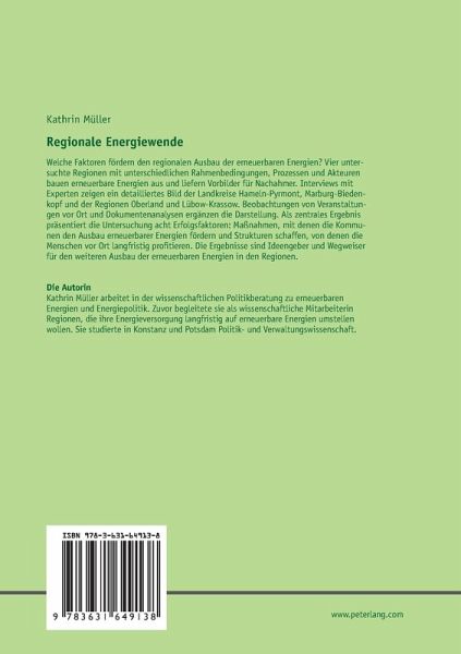 Welche Faktoren fördern den regionalen Ausbau der erneuerbaren Energien? Vier untersuchte Regionen mit unterschiedlichen Rahmenbedingungen, Prozessen und Akteuren bauen erneuerbare Energien aus und liefern Vorbilder für Nachahmer. Interviews mit Experten zeigen ein detailliertes Bild der Landkreise Hameln-Pyrmont, Marburg-Biedenkopf und der Regionen Oberland und Lübow-Krassow. Beobachtungen von Veranstaltungen vor Ort und Dokumentenanalysen ergänzen die Darstellung. Als zentrales Ergebnis präsentiert die Untersuchung acht Erfolgsfaktoren: Maßnahmen, mit denen die Kommunen den Ausbau erneuerbarer Energien fördern und Strukturen schaffen, von denen die Menschen vor Ort langfristig profitieren. Die Ergebnisse sind Ideengeber und Wegweiser für den weiteren Ausbau der erneuerbaren Energien in den Regionen.