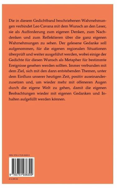 Mit seinen Gedichten (1980 - 2018) erzählt Leo Cavana kurze Sequenzen aus unserem Leben. Sie berichten vom alltäglichen Wahnsinn, der uns umgibt, egal ob nachdenklich, ernst, bitterbös, erdrückend, launig oder heiter, amüsant, schmunzelnd und lachend. Aufgefüllt mit einigen lyrischen Bruchstücken, als lose Gedanken. Irgendetwas bleibt bei einem jeden von uns immer irgendwie und irgendwo hängen, was uns mal stark, mal weniger stark beschäftigt. Somit steht der Begriff "regional" im Titel für kein geografisches Gebiet, sondern für all die Begebenheiten, die wir in unserem direkten Umfeld wahrnehmen können.