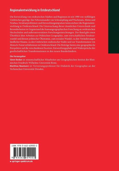 Regionalentwicklung in Ostdeutschland - Geographien einer Transformation. Zur Einleitung.- I Die politische Geographie Ostdeutschlands.- Der "Osten" ist anders!? Anmerkungen zu den Diskursen über die politischen Einstellungen in Ostdeutschland.- Eliten in Ostdeutschland. Repräsentationsdefizit und Entfremdung der Ostdeutschen?.- Die Polizei in Sachsen. Umstrukturierungen und Veränderung polizeilicher Praxis.- Ostdeutsche Grenzregionen. Zwischen Systemtransformation, EU-Osterweiterung und alltäglichem Bordering.- Geographien der Unsicherheit. Bürgerwehren an der ostdeutschen EU-Binnengrenze.- II Wirtschaftlicher Strukturwandel und politische Ökonomie.- Wirtschaftsräumliche Struktur und Entwicklung Ostdeutschlands. Ein Überblick.- Kapitalmangel und Transferabhängigkeit. Zur politischen Ökonomie Ostdeutschlands.- Finanzialisierung in Ostdeutschland.- Finanzbedarfe der Mittelzentren in Ostdeutschland. Fiskalische Herausforderungen für Mittelzentren durch den demographischen Wandel und eine ländlich-periphere Lage.- Internationale Fachkräfte auf dem ostdeutschen Arbeitsmarkt. Ein Beitrag zur Minderung des Fachkräftemangels?.- Kreative Ökonomien in der Hauptstadtregion Berlin-Brandenburg.- Zentralisierung, Suburbanisierung und Filialisierung. Zur Entwicklung des Einzelhandels in Ostdeutschland.- III Sozialer Wandel in Ostdeutschland.- "Mitteldeutschland". Regionalentwicklung und regionale Identität aus konstruktivistischer Perspektive.- Ostdeutsche Identität im Wandel der Zeiten. 30 Jahre und noch kein Ende.- Wanderungen und Regionalentwicklung. Ostdeutschland vor der Trendwende?.- Migrationsgeschichte Ostdeutschlands I: Von der Zeit der DDR bis in die 1990er-Jahre.- Migrationsgeschichte Ostdeutschlands II: Internationale Migration in Ostdeutschland und ihre gesellschaftliche Wahrnehmung seit der Jahrtausendwende.- Ostdeutschland multikulturell und postmigrantisch.- "Aus der eigenen Sozialisierung kann man so einfach nicht heraus." Geographische Lehre und Forschung in und zu "Ostdeutschland".- IV Ostdeutsche Städte im Umbruch.- Wohnungsmärkte in ostdeutschen Großstädten. Zwischen Schrumpfung und Vermarktlichung.- Vorzeichenwechsel der Stadtentwicklung in Ostdeutschland nach 1989: Sub-/Des-/Reurbanisierung.- Ostdeutsche Großwohnsiedlungen. Zwischen Wohnungsmarktentwicklung und politischen Entscheidungen.- Gentrification in ostdeutschen Städten.- Bodenwertentwicklungen in Wachstumspolen Ostdeutschlands. Eine Untersuchung am Beispiel der Städte Dresden, Erfurt und Jena.- Umkämpfte Internationalisierung in Berlin: Großprojekte, Tourismus, Web-Tech-Branche und Migration.- Städtische Protestbewegungen in Leipzig. Orientierungsversuche innerhalb einer veränderten Marktrealität.- V Ländlicher Wandel in Ostdeutschland.- Zukunftsfähige Agrarstrukturen in Ostdeutschland?.- Daseinsvorsorge in ländlichen Räumen: zwischen Abbau, Umbau und Ausbau.- Sesshaftigkeit in ostdeutschen ländlich-peripheren Räumen. Wie Wanderungen die Bevölkerungsstruktur langfristig verändern.- Alltag in ländlichen Räumen.- "Smart Countryside" im Osten? Zum Wandel ländlicher Räume und den Herausforderungen der Digitalisierung.- Raumordnung in Ostdeutschland: Labor und Innovator für die Raumentwicklung.- VI Mensch-Natur-Verhältnisse und Infrastrukturen.- Verkehrspolitik und Mobilitätsentwicklung in Ostdeutschland.- Ostdeutsche Kulturlandschaften im Wandel.- Sanierung alter Industrieregionen in Ostdeutschland.- Tourismus und Regionalentwicklung innerhalb und außerhalb ostdeutscher Großschutzgebiete.- Klimapolitik in Dresden - Diskurse um Klimawandel im Kontext von Stadtentwicklungspolitik.