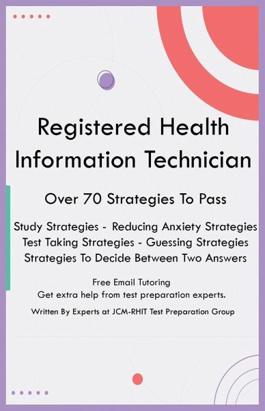 Bonus Offer: Free Online Email Tutoring Subscription This booklet is solely devoted to test taking strategies that can be applied to the RHIT exam. If you have done a lot of practice questions and content, this booklet will provide very useful techniques to passing the RHIT exam. If you are taking the exam for the first time, this booklet will be a huge asset to helping you study and pass your exam the first time. If you are really struggling to pass, this booklet can greatly support you to pass the RHIT exam. The booklet is devoted to teaching you how to take the RHIT exam along with providing effective strategies. The booklet covers the following: RHIT Study Strategies RHIT Test Taking Strategies Reducing Anxiety Strategies Guessing Strategies Strategies To Decide Between Two Answers Systematic Approach To Answering Questions The purpose of the booklet is to provide test taking strategies to use for the RHIT exam. The booklet contains over 70 strategies to achieve a passing score on the RHIT exam.