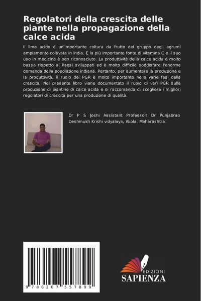 Il lime acido è un'importante coltura da frutto del gruppo degli agrumi ampiamente coltivata in India. È la più importante fonte di vitamina C e il suo uso in medicina è ben riconosciuto. La produttività della calce acida è molto bassa rispetto ai Paesi sviluppati ed è molto difficile soddisfare l'enorme domanda della popolazione indiana. Pertanto, per aumentare la produzione e la produttività, il ruolo dei PGR è molto importante nelle varie fasi della crescita. Nel presente libro viene documentato il ruolo di vari PGR sulla produzione di piantine di calce acida e si raccomanda di scegliere i migliori regolatori di crescita per una produzione di qualità.