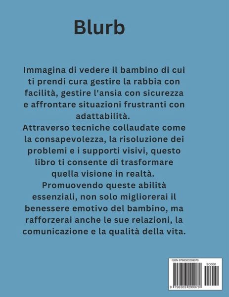 Stai lottando per aiutare un bambino con autismo a gestire emozioni intense come rabbia, ansia e frustrazione? La regolazione emotiva può sembrare una sfida travolgente, ma non deve esserlo. Questo libro trasformativo è la tua guida definitiva per comprendere e affrontare i bisogni emotivi unici dei bambini con disturbo dello spettro autistico (ASD). Ricco di strategie attuabili, approfondimenti di esperti e consigli compassionevoli, Regolazione emotiva per bambini con autismo offre un approccio passo passo per aiutare i bambini a sviluppare la resilienza emotiva. Che tu sia un genitore, un insegnante, un terapista o un caregiver, scoprirai strumenti pratici su misura per le sfide dell'ASD. Dall'identificazione dei fattori scatenanti all'insegnamento delle capacità di autoregolamentazione, questo libro ti fornisce gli strumenti per creare ambienti calmi e di supporto in cui la crescita emotiva può prosperare. Parte 1: Comprendere la regolazione emotiva Capitolo 1: Cos'è la regolazione emotiva? Definizione e spiegazione della regolazione emotiva Regolazione emotiva attraverso i contesti Importanza della regolazione emotiva nella vita quotidiana Capitolo 2: Regolazione emotiva nel disturbo dello spettro autistico Panoramica delle sfide della regolazione emotiva nel disturbo dello spettro autistico Impatto della disregolazione emotiva sul comportamento e sul benessere Un invito all'azione Parte 2: Gestire la rabbia Capitolo 3: Comprendere e gestire la rabbia nei bambini autistici Identificazione dei fattori scatenanti e dei segni di rabbia Strategie per gestire e regolare la rabbia Obiettivi a lungo termine Capitolo 4: Insegnare le tecniche di gestione della rabbia Tecniche di rilassamento e consapevolezza Capacità di comunicazione e risoluzione dei problemi Parte 3: Gestire l'ansia Capitolo 5: Comprendere e gestire l'ansia nei bambini autistici Identificazione dei fattori scatenanti e dei segni di ansia Strategie per la gestione e la regolazione dell'ansia Capitolo 6: Insegnare le tecniche di gestione dell'ansia Capacità di coping e strategie di autoregolamentazione Terapia dell'esposizione e desensibilizzazione Parte 4: Gestire la frustrazione Capitolo 7: Comprendere e gestire la frustrazione nei bambini autistici Identificare i fattori scatenanti e i segni di frustrazione Strategie per gestire e regolare la frustrazione Capitolo 8: Insegnare le tecniche di gestione della frustrazione Capacità di problem solving e adattabilità Consapevolezza emotiva e autoregolamentazione Parte 5: Insegnare le abilità di regolazione emotiva Capitolo 9: Insegnare la consapevolezza e il riconoscimento emotivi Identificare ed etichettare le emozioni Comprendere bisogni e sentimenti emotivi Capitolo 10: Insegnare le abilità di autoregolamentazione Automonitoraggio e autovalutazione Strategie e tecniche di autoregolamentazione Parte 6: Creare un ambiente favorevole Capitolo 11: Creare un ambiente calmo e solidale Modifiche e sistemazioni ambientali Supporti visivi e strategie di comunicazione Non aspettare per fare una differenza duratura nella vita di un bambino con autismo. Immergiti oggi stesso nella regolazione emotiva per i bambini con autismo e scopri come trasformare le sfide emotive in opportunità di crescita. Il tuo viaggio verso la costruzione della stabilità emotiva e della connessione inizia qui!