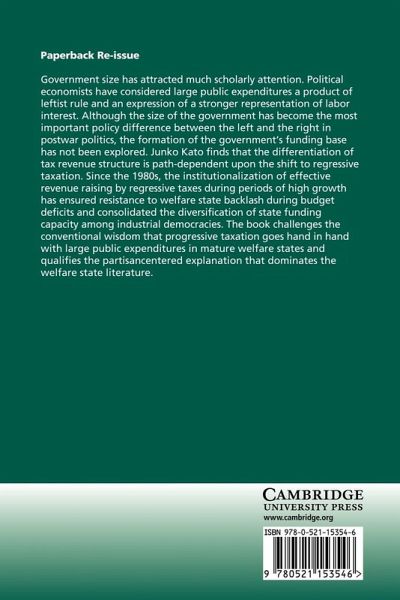 Government size has attracted much scholarly attention. Political economists have considered large public expenditures a product of leftist rule and an expression of a stronger representation of labour interest. Although the size of the government has become the most important policy difference between the left and right in post-war politics, the formation of the government's funding base is also important. Junko Kato finds that the differentiation of tax revenue structure is path dependent upon the shift to regressive taxation. Since the 1980s, the institutionalisation of effective revenue raising by regressive taxes during periods of high growth has ensured resistance to welfare state backlash during budget deficits and consolidated the diversification of state funding capacity among industrial democracies. This book challenges the conventional wisdom that progressive taxation goes hand-in-hand with large public expenditures in mature welfare states and qualifies the partisan centred explanation that dominates the welfare state literature.