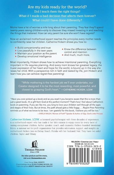 A motherhood expert teaches the seven essential principles every mom needs to confidently raise her children. Every mother wants her children to grow up happy, healthy, and fulfilled. But reaching that destination can be full of indecision, worry, and second-guessing. Ask any mother, "Do you think you're doing a good job?" and she'll likely give you a mixed answer. In her groundbreaking book, "Regret-Free Parenting," Catherine Hickem offers seven principles for mothers to raise their children well . . . and "know" they're doing it right. With nearly thirty years of experience as a psychotherapist, speaker, women's ministry director, and founder of Intentional Moms, Catherine Hickem shows how to build respect, companionship, trust, and emotional health as well as how to usher confident, centered, and secure adults into the world. If any mother has ever wondered, "Am I raising a good kid and am I doing it right?" she needs the impactful teaching of "Regret-Free Parenting."