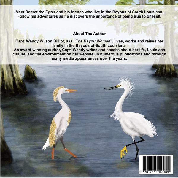 Meet 'Regret The Egret' and his animal friends, who live in the Bayous of South Louisiana. Follow his adventures, as he discovers the importance of being true to oneself!