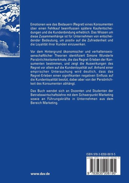 Vor dem Hintergrund ökonomischer und verhaltenswissenschaftlicher Theorien identifiziert Simone Wunderle Persönlichkeitsmerkmale, die das Regret-Erleben der Konsumenten bestimmen, und zeigt die Auswirkungen des Regret vor allem auf die Kundenloyalität auf. Anhand einer empirischen Untersuchung wird deutlich, dass das Regret-Erleben einen signifikanten negativen Einfluss auf die Kundenloyalität besitzt, dabei aber von der Persönlichkeit des Konsumenten abhängt.