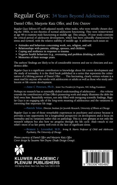 Regular Guys follows 67 well-adjusted mostly white males, who were initially chosen during the 1960s, to test theories of normal adolescent functioning. They were reinterviewed at age 48 to examine male functioning at middle age. This unique, 34-year study contrasts the critical period of adolescent development, which has been culturally characterized by stress and turmoil, with the relative stability of middle age. It addresses such issues as: