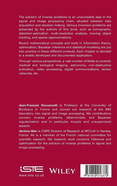 Jean-François Giovannelli is Professor at the University of Bordeaux in France and carried out research at the IMS laboratory into signal and image processing. His contributions concern inverse problems, deterministic and Bayesian regularization and in particular myopic and unsupervised aspects. Jérôme Idier is CNRS Director of Research at IRCCyN in Nantes, France. He is a member of the French national committee for scientific research. His research work concerns inference and optimization for the solution of inverse problems in signal and image processing.