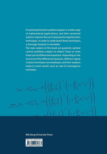 Ill-posed optimization problems appear in a wide range of mathematical applications, and their numerical solution requires the use of appropriate regularization techniques. In order to understand these techniques, a thorough analysis is inevitable. The main subject of this book are quadratic optimal control problems subject to elliptic linear or semi-linear partial differential equations. Depending on the structure of the differential equation, different regularization techniques are employed, and their analysis leads to novel results such as rate of convergence estimates.