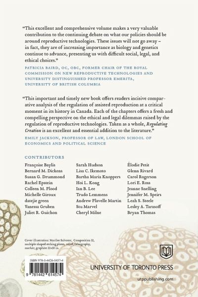 Regulating Creation is a collection of essays featuring contributions by Canadian and international scholars. It offers a variety of perspectives on the role of law in dealing with the legal, ethical, and policy issues surrounding changing reproductive technologies.