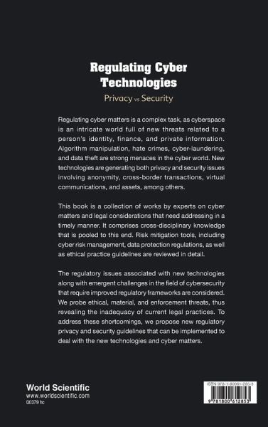 Regulating cyber matters is a complex task, as cyberspace is an intricate world full of new threats related to a person's identity, finance, and private information. Algorithm manipulation, hate crimes, cyber-laundering, and data theft are strong menaces in the cyber world. New technologies are generating both privacy and security issues involving anonymity, cross-border transactions, virtual communications, and assets, among others. This book is a collection of works by experts on cyber matters and legal considerations that need addressing in a timely manner. It comprises cross-disciplinary knowledge that is pooled to this end. Risk mitigation tools, including cyber risk management, data protection regulations, as well as ethical practice guidelines are reviewed in detail. The regulatory issues associated with new technologies along with emergent challenges in the field of cybersecurity that require improved regulatory frameworks are considered. We probe ethical, material, and enforcement threats, thus revealing the inadequacy of current legal practices. To address these shortcomings, we propose new regulatory privacy and security guidelines that can be implemented to deal with the new technologies and cyber matters.