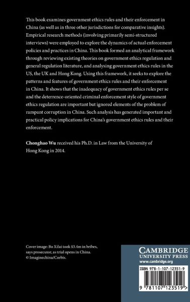 This book examines government ethics rules and their enforcement in China, as well as in three other jurisdictions for comparative insights. Empirical research methods (involving primarily semi-structured interviews) have been employed to explore the dynamics of actual enforcement policies and practices in China. This book forms an analytical framework through reviewing existing theories on government ethics regulation and general regulation literature and analyzing government ethics rules in the US, the UK, and Hong Kong. Using this framework, it seeks to explore the patterns and features of government ethics rules and their enforcement in China. It shows that the inadequacy of government ethics rules per se and the deterrence-oriented criminal enforcement style of government ethics regulation are important but ignored elements of the problem of rampant corruption in China. Such analysis has generated important and practical policy implications for China's government ethics rules and their enforcement.