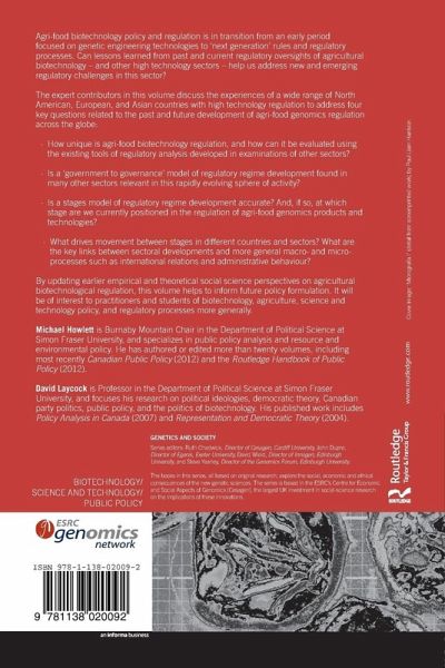 Agri-food bio-technology policy and regulation is transitioning from an early period focused on genetic engineering technologies to 'next-generation' rules and regulatory processes linked to challenges originating in a wide variety of new technological processes and applications. Can lessons learned from past and current regulatory oversights of agricultural biotechnology - and other high-technology sectors - help us address new and emerging regulatory challenges in the agri-food genetics sector? The expert contributors in this volume discuss the experiences of a wide range of North American, European and Asian countries with high technology regulation to address four key questions related to the past and future development of agri-food genomics regulation across the globe. how unique is agri-food biotechology regulation, and how can it be evaluated using the existing tools of regulatory analysis developed in examinations of other sectors? is a 'government to governance' model of regulatory regime development found in many other sectors relevant in this rapidly evolving sphere of activity? is a stages model of regulatory regime development accurate? And, if so, at which stage are we currently positioned in the regulation of agri-food genomics products and technologies? what drives movement between stages in different countries and sectors? In assessing such drivers, what are the key links between sectoral (meso) developments and more general macro and micro developments such as international relations and administrative behaviour? By updating, extending and challenging earlier empirical and theoretical social science perspectives on agricultural bio-technological regulation, this volume helps to inform future policy formulation. It will be of interest to practitioners and students of biotechnology, agriculture, and science and technology policy, and regulatory processes more generally.