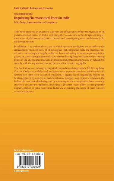 The book draws on extensive empirical research involving India's 2013 Drug Price Control Order and widely-used medicines such as paracetamol and metformin to illustrate how firms have weakened regulation. It arguesthat theregulatory regime can be strengthened by using systematic analysis of product- and region-level data in the Indian pharmaceutical industry, and by screening for the strategies that firms currently employ to circumvent regulation. In closing, it discusses recent efforts to strengthen the implementation of price controls in India and expanding the scope of price controls to medical devices.