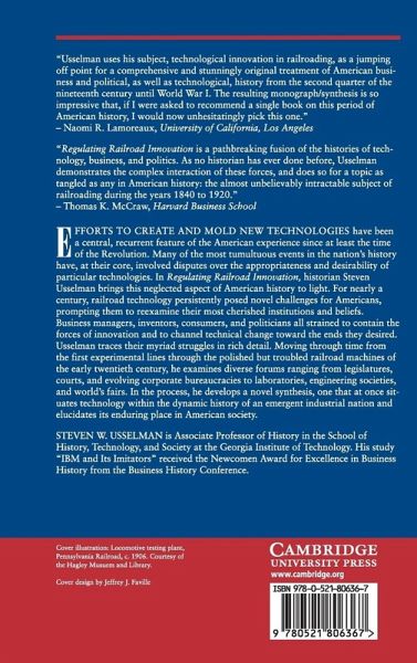Efforts to create and mould new technologies have been a central, recurrent feature of the American experience since at least the time of the Revolution. In Regulating Railroad Innovation, historian Steven Usselman brings this neglected aspect of American history to light. For nearly a century, railroad technology persistently posed novel challenges for Americans, prompting them to re-examine their most cherished institutions and beliefs. Business managers, inventors, consumers, and politicians all strained to contain the forces of innovation and to channel technical change toward the ends they desired. Moving through time from the first experimental lines through the polished but troubled railroad machines of the early twentieth century, Usselman examines diverse forums ranging from legislatures, and evolving corporate bureaucracies to laboratories, engineering societies, and world's fairs. In the process, his book situates technology within the dynamic history of an emergent industrial nation and elucidates its enduring place in American society.