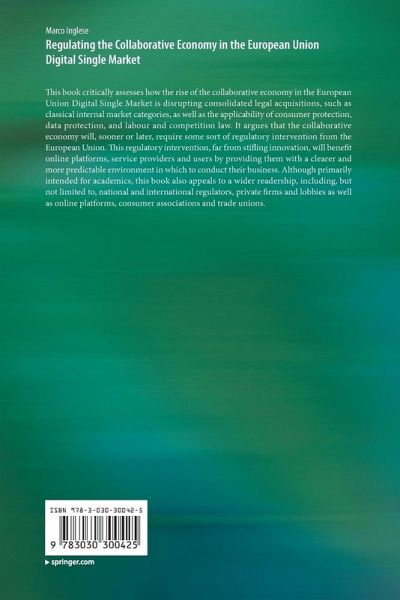 This book critically assesses how the rise of the collaborative economy in the European Union Digital Single Market is disrupting consolidated legal acquisitions, such as classical internal market categories, as well as the applicability of consumer protection, data protection, and labour and competition law. It argues that the collaborative economy will, sooner or later, require some sort of regulatory intervention from the European Union. This regulatory intervention, far from stifling innovation, will benefit online platforms, service providers and users by providing them with a clearer and more predictable environment in which to conduct their business. Although primarily intended for academics, this book also appeals to a wider readership, including, but not limited to, national and international regulators, private firms and lobbies as well as online platforms, consumer associations and trade unions.