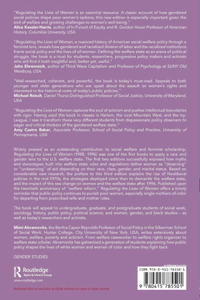 Regulating the Lives of Women is a key milestone in the efforts to apply a 'gender-lens' to welfare and explores the history of womens' relationship to the welfare state.