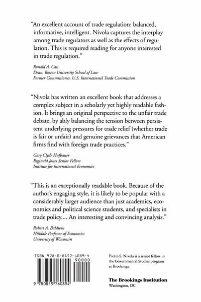 " In the early 1980s, American complaints about unfair trade practices began to intensify. Sunrise industries, such as manufacturers of semiconductors and telecommunications equipment, joined older complainants, including steel and textile producers, in seeking more safeguards against international competitors who priced their products too aggressively or whose governments subsidized exports or protected home markets. In this politically charged atmosphere, the U.S. government has devised increasingly stringent regulatory programs to address the claimed abuses and distortions. In this book, Pietro Nivola examines the strenuous effort to combat the objectionable trading practices of other countries. Through most of the postwar period, Nivola notes, policymakers had deemed it in the nation's economic and strategic interests to tolerate asymmetries and infractions in the international trading order. But that tolerance has been sharply lowered by heightened sensitivity to inequities, and a growing conviction that government should intervene, frequently and forcefully, to ensure a ""level playing field."" The book maintains that foreign protectionism lower East-West tensions, and alleged American decline in the face of international competition cannot fully explain the stiffening regulation of unfair trade. The world trading system, Nivola contends, is not more restrictive now than it was earlier. Cries about foreign commercial transgressions in recent years have remained shrill despite a formidable U.S. export boom and an improved current account valance. Much of the U.S. regulatory activity has acquired a political momentum of its own. The activity has increased not just because global competitive pressures have generally intensified but because we have developed more ways and inducement to complain about those pressures. Nivola cautions that trade regulations now bears too much of the burden for ameliorating economic imbalances and deficiencies. The tendency a"