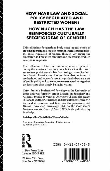 This collection of original essays looks at a topic of growing interest and debate in feminist and historical circles: the social regulation of women through law during the 19th and 20th centuries, and the resistance which emerged in response. The collection refutes the notion of women oppressed during the 19th century, unable to act in opposition to the law. When issues of motherhood and women's sexuality became areas of public policy, women began to negotiate the law, as case studies from Europe and the USA show. This book should be of interest to students of women's studies, sociology of law, and social policy.