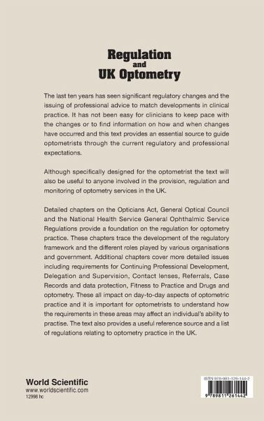 he last ten years has seen significant regulatory changes and the issuing of professional advice to match developments in clinical practice. It has not been easy for clinicians to keep pace with the changes or to find information on how and when changes have occurred and this text provides an essential source to guide optometrists through the current regulatory and professional expectations. Although specifically designed for the optometrist the text will also be useful to anyone involved in the provision, regulation and monitoring of optometry services in the UK. Detailed chapters on the Opticians Act, General Optical Council and the National Health Service General Ophthalmic Service Regulations provide a foundation on the regulation for optometry practice. These chapters trace the development of the regulatory framework and the different roles played by various organisations and government. Additional chapters cover more detailed issues including requirements for Continuing Professional Development, Delegation and Supervision, Contact lenses, Referrals, Case Records and data protection, Fitness to Practice and Drugs and optometry. These all impact on day-to-day aspects of optometric practice and it is important for optometrists to understand how the requirements in these areas may affect an individual's ability to practise. The text also provides a useful reference source and a list of regulations relating to optometry practice in the UK.