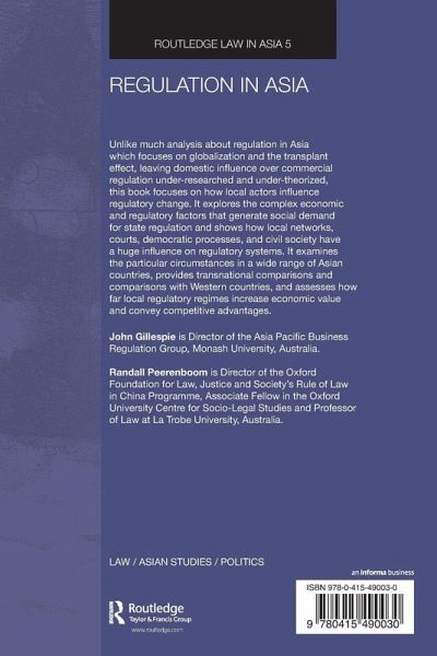 Professor John Gillespie is Director of the Asia Pacific Business Regulation Group, Monash University Randall Peerenboom is Professor of Law at La Trobe University, Director of the Oxford Foundation for Law, Justice and Society's Rule of Law in China Programme and Associate Fellow in the Oxford University Centre for Socio-Legal Studies