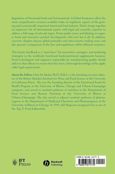Regulation of Functional Foods and Nutraceuticals: A Global Perspective offers the most comprehensive resource available today on regulatory aspects of the growing and economically important functional food industry. Hasler brings together an impressive list of international experts with legal and scientific expertise address the full-range of relevant topics. From quality issues and labeling, to organic foods and innovative product development-this text has it all. In addition, overview chapters discuss global principles and inter-country trading issues and also present a comparison of the…mehr