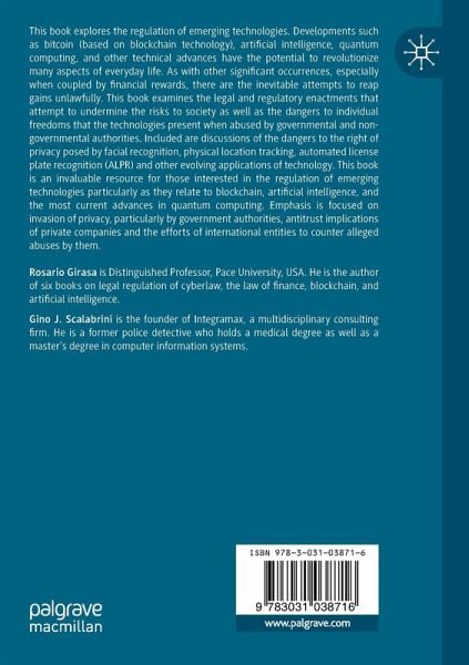 This book explores the regulation of emerging technologies. Developments such as bitcoin (based on blockchain technology), artificial intelligence, quantum computing, and other technical advances have the potential to revolutionize many aspects of everyday life. As with other significant occurrences, especially when coupled by financial rewards, there are the inevitable attempts to reap gains unlawfully. This book examines the legal and regulatory enactments that attempt to undermine the risks to society as well as the dangers to individual freedoms that the technologies present when abused by governmental and non-governmental authorities. Included are discussions of the dangers to the right of privacy posed by facial recognition, physical location tracking, automated license plate recognition (ALPR) and other evolving applications of technology. This book is an invaluable resource for those interested in the regulation of emerging technologies particularly as they relate to blockchain, artificial intelligence, and the most current advances in quantum computing. Emphasis is focused on invasion of privacy, particularly by government authorities, antitrust implications of private companies and the efforts of international entities to counter alleged abuses by them.