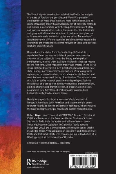 Robert Boyer and Yves Sailard's Theorie de la Regulation introduces the Francophone public to one of the most important new currents in social science of the past half-century. This long-awaited translation will help broaden its impact still further. Regulation Theory focuses on the structural features of a given model and has helped enliven the examination of core economic concepts.