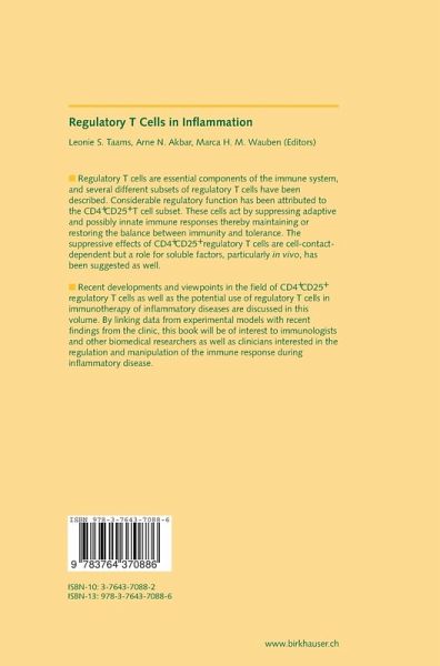 Recent developments and viewpoints in the field of CD4+CD25+ regulatory T-cells as well as the potential use of regulatory T-cells in immunotherapy of inflammatory diseases are discussed in this volume. By linking data from experimental models with recent findings from the clinic, this book will be of interest to immunologists and other biomedical researchers as well as clinicians interested in the regulation and manipulation of the immune response during inflammatory disease.