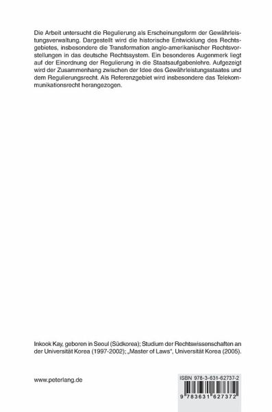 Die Arbeit untersucht die Regulierung als Erscheinungsform der Gewährleistungsverwaltung. Dargestellt wird die historische Entwicklung des Rechtsgebietes, insbesondere die Transformation anglo-amerikanischer Rechtsvorstellungen in das deutsche Rechtssystem. Ein besonderes Augenmerk liegt auf der Einordnung der Regulierung in die Staatsaufgabenlehre. Aufgezeigt wird der Zusammenhang zwischen der Idee des Gewährleistungsstaates und dem Regulierungsrecht. Als Referenzgebiet wird insbesondere das Telekommunikationsrecht herangezogen.