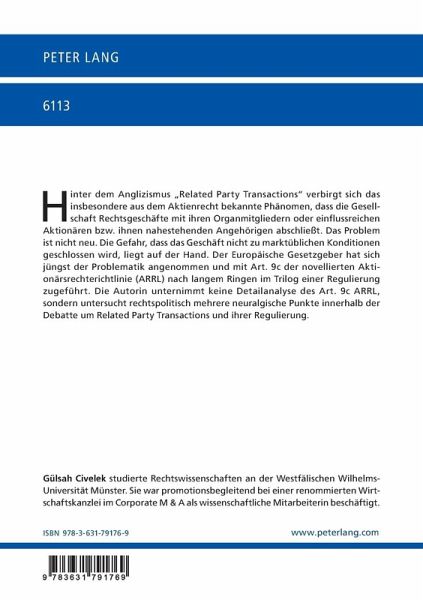 Hinter dem Anglizismus «Related Party Transactions» verbirgt sich das insbesondere aus dem Aktienrecht bekannte Phänomen, dass die Gesellschaft Rechtsgeschäfte mit ihren Organmitgliedern oder einflussreichen Aktionären bzw. ihnen nahestehenden Angehörigen abschließt. Das Problem ist nicht neu. Die Gefahr, dass das Geschäft nicht zu marktüblichen Konditionen geschlossen wird, liegt auf der Hand. Der Europäische Gesetzgeber hat sich jüngst der Problematik angenommen und mit Art. 9c der novellierten Aktionärsrechterichtlinie (ARRL) nach langem Ringen im Trilog einer Regulierung zugeführt. Die Autorin unternimmt keine Detailanalyse des Art. 9c ARRL, sondern untersucht rechtspolitisch mehrere neuralgische Punkte innerhalb der Debatte um Related Party Transactions und ihrer Regulierung.