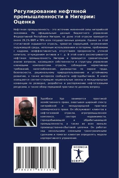 Neftqnaq promyshlennost' - äto istochnik zhiznennoj sily nigerijskoj äkonomiki. Po oficial'nym dannym büdzhetnogo uprawleniq Federatiwnoj Respubliki Nigeriq, na dolü ätoj otrasli prihoditsq okolo 29,1% VVP i 78% wseh gosudarstwennyh dohodow. Odnako za ätoj statistikoj skrywaetsq otrasl', chrewataq korrupciej, zagrqzneniem okruzhaüschej sredy, nepolnym ispol'zowaniem i poterqmi, problemami s kadrami, neäffektiwnost'ü, otsutstwiem prozrachnosti, utechkoj kapitala, otchuzhdeniem aktiwow i t. d. V ätoj knige rassmatriwaetsq neftqnaq promyshlennost' Nigerii i prowoditsq srawnitel'nyj analiz woprosow, kasaüschihsq sobstwennosti i struktury uprawleniq klüchewymi komponentami otrasli, soblüdeniq normatiwnyh trebowanij, nalogooblozheniq, rukowodstwa po ohrane truda, bezopasnosti, racional'nomu prirodopol'zowaniü i ustojchiwomu razwitiü, a takzhe interesow soobschestw neftedobytchikow. V knige osweschaütsq sootwetstwuüschie nacional'nye zakony i mezhdunarodnye konwencii po razwedke, razrabotke i rasporqzheniü neftegazowymi resursami, a takzhe obzor peredowoj praktiki po dannomu woprosu.