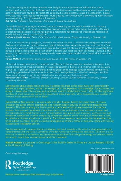 Conversations about rehabilitation and how to address the drugs-crime nexus have been dominated by academics and policymakers, without due recognition of the experience and knowledge of practitioners. Not enough is known about the cultures and conditions in which rehabilitation occurs. Why is it that significant numbers of practitioners are¿leaving the alcohol and other drugs field, while disproportionate numbers of criminal justice practitioners are on leave? Rehabilitation Work provides a unique insight into what happens behind the closed doors of prisons, probation and parole offices, drug rehabs, and recovery support services drawing on research from Australia. This book is among the first to provide a dedicated empirical examination of the interface between the concurrent processes of desistance from crime and recovery from substance misuse, and the implications for rehabilitation work. Hannah Graham uses practitioner interviews, workforce data and researcher observations to reveal compelling differences between official accounts of rehabilitation work, and what practitioners actually do in practice. Practitioners express a desire to be the change rather than being subject to change, actively co-producing progressive reforms instead of passively coping with funding cutbacks and interagency politics. Applied examples of how practitioners collaborate, lead and innovate in the midst of challenging work are complemented with evocative illustrations of insider humour and professional resilience. This book is a key resource for students, academics and practitioners across fields including criminology and criminal justice, social work, psychology, counselling and addiction treatment.