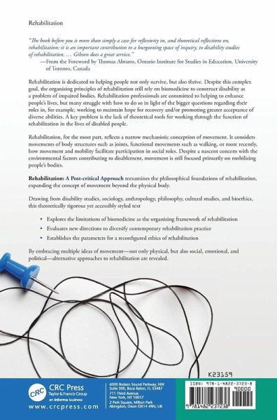 This book reexamines the philosophical foundations of physical rehabilitation, expanding the understanding of movement beyond the physical body. Drawing from disability studies, sociology, anthropology, philosophy, cultural studies, and bioethics, this theoretically rigorous yet accessibly styled text explores the limitations of biomedicine as the organizing framework of rehabilitation, evaluates new directions to diversify rehabilitation practice, and establishes the parameters for a reconfigured ethics of rehabilitation. By embracing multiple ideas of movement-not only physical, but also social, emotional, and political-new approaches to rehabilitation are revealed.