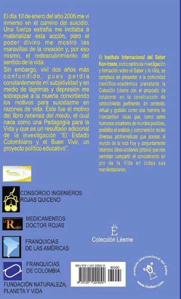 El día 10 de enero del año 2006 me vi inmerso en el camino del suicidio. Una fuerza extraña me incitaba a materializar esta acción, pero el poder divino me mostró las maravillas de la creación y, por eso mismo, el redescubrimiento del sentido de la vida. Sin embargo, viví dos años más confundido, pues perdía constantemente mi subjetividad y en medio de lágrimas y depresión me sobrepuse a la muerte convirtiendo los motivos para suicidarme en razones de vida. Éste fue el motivo del libro en la vida, rehenes del miedo, el cual nace como una Pedagogía para la Vida y que es un resultado adicional de la investigación "El Estado Colombiano y el Buen Vivir, un proyecto político educativo".