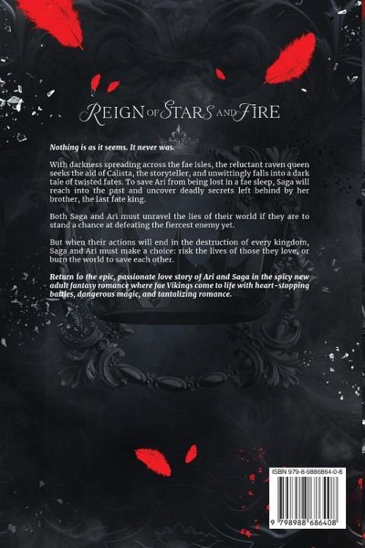 Nothing is as it seems. It never was. With darkness spreading across the fae isles, the reluctant raven queen seeks the aid of Calista, the storyteller, and unwittingly falls into a dark tale of twisted fates. To save Ari from being lost in a fae sleep, Saga will reach into the past and uncover deadly secrets left behind by her brother, the last fate king. Both Saga and Ari must unravel the lies of their world if they are to stand a chance at defeating the fiercest enemy yet. But when their actions will end in the destruction of every kingdom, Saga and Ari must make a choice: risk the lives of those they love, or burn the world to save each other.Return to the epic, passionate love story of Ari and Saga in the spicy new adult fantasy romance where fae Vikings come to life with heart-stopping battles, dangerous magic, and tantalizing romance.