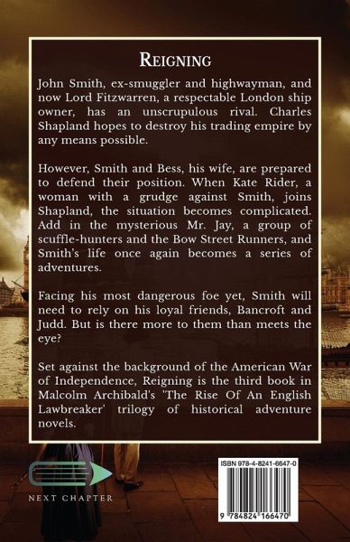 John Smith, ex-smuggler and highwayman, and now Lord Fitzwarren, a respectable London ship owner, has an unscrupulous rival. Charles Shapland hopes to destroy his trading empire by any means possible. However, Smith and Bess, his wife, are prepared to defend their position. When Kate Rider, a woman with a grudge against Smith, joins Shapland, the situation becomes complicated. Add in the mysterious Mr. Jay, a group of scuffle-hunters and the Bow Street Runners, and Smith's life once again becomes a series of adventures. Facing his most dangerous foe yet, Smith will need to rely on his loyal friends, Bancroft and Judd. But is there more to them than meets the eye? Set against the background of the American War of Independence, Reigning is the third book in Malcolm Archibald's 'The Rise Of An English Lawbreaker' trilogy of historical adventure novels.