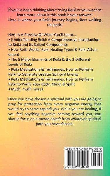If you've been thinking about trying Reiki or you want to learn more about it this book is your answer! Here is where your Reiki journey begins, start walking the path! Here Is A Preview Of What You'll Learn... Understanding Reiki: A Comprehensive Introduction to Reiki and Its Salient Components How Reiki Works: Reiki Healing Types & Reiki Attunement The 5 Major Elements of Reiki & the 3 Different Levels of Reiki Reiki Meditations & Techniques: How to Perform Reiki to Generate Greater Spiritual Energy Reiki Meditations & Techniques: How to Perform Reiki to Purify Your Body, Mind, & Spirit Much, much more! Once you have chosen a spiritual path you are going to pray for protection from every negative energy that would try to come against you. While you are healing, if you feel anything negative coming toward you, you should focus on a sacred object from whatever spiritual path you have chosen.