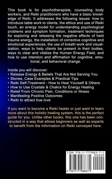 This book is for psychotherapists, counseling body workers, and Reiki practitioners who have a basic knowledge of Reiki. It addresses the following issues: how to introduce table work to clients, the ethics and use of Reiki touch, an energy model for understanding psychological problems and symptom formation, treatment techniques for exploring and releasing the negative effects of held trauma energy, the installation of corrective cognitive and emotional experiences, the use of breath work and visualization, ways to help clients be present in their bodies, ways to clear and vitalize the Human Energy Field, and how to use intention and affirmation for cognitive, emotional, and behavioral change. Inside you will discover:Release Energy & Beliefs That Are Not Serving You Stories, Case Examples & Practical Tips Reiki Self-Treatment - How to Heal Yourself & Others How to Use Crystals & Chakra for Energy Healing Relief From Chronic Pain, Conditions or Illness Manifesting Positive Outcomes Reiki to attract true love If you want to become a Reiki healer or just want to learn more about this holistic healing system, this is the perfect guide for you. Unlike other books, this one has been constructed in a way that allows beginners as well as experts to benefit from the information on Reiki conveyed here.