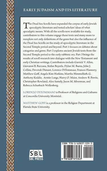 The Dead Sea Scrolls have expanded the corpus of early Jewish apocalyptic literature and tested scholars' ideas of what apocalyptic means. With all of the scrolls now available for study, contributors to this volume engage those texts and many more to reexplore not only definitions of the genre but also the influence of the Dead Sea Scrolls on the study of apocalyptic literature in the Second Temple period and beyond. Part 1 focuses on debates about categories and genre. Part 2 explores ancient Jewish texts from the Second Temple period to the early rabbinic era. Part 3 brings the results of scroll research into dialogue with the New Testament and early Christian writings.