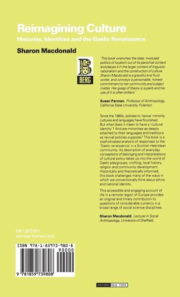 Since the 1960s, policies to 'revive' minority cultures and languages have flourished. But what does it mean to have a 'cultural identity'? And are minorities as deeply attached to their languages and traditions as revival policies suppose? This book is a sophisticated analysis of responses to the 'Gaelic renaissance' in a Scottish Hebridean community. Its description of everyday conceptions of belonging and interpretations of cultural policy takes us into the world of Gaelic playgroups, crofting, local history, religion and community development. Historically and theoretically informed, this book challenges many of the ways in which we conventionally think about ethnic and national identity. This accessible and engaging account of life in this remote region of Europe provides an original and timely contribution to questions of considerable currency in a broad range of social science disciplines.