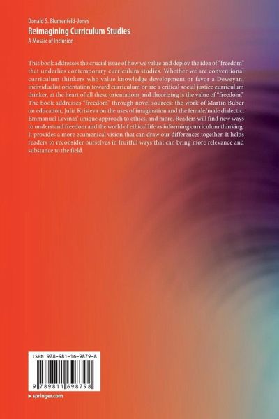 This book addresses the crucial issue of how we value and deploy the idea of "freedom" that underlies contemporary curriculum studies. Whether we are conventional curriculum thinkers who value knowledge development or favor a Deweyan, individualist orientation toward curriculum or are a critical social justice curriculum thinker, at the heart of all these orientations and theorizing is the value of "freedom." The book addresses "freedom" through novel sources: the work of Martin Buber on education, Julia Kristeva on the uses of imagination and the female/male dialectic, Emmanuel Levinas' unique approach to ethics, and more. Readers will find new ways to understand freedom and the world of ethical life as informing curriculum thinking. It provides a more ecumenical vision that can draw our differences together. It helps readers to reconsider ourselves in fruitful ways that can bring more relevance and substance to the field.